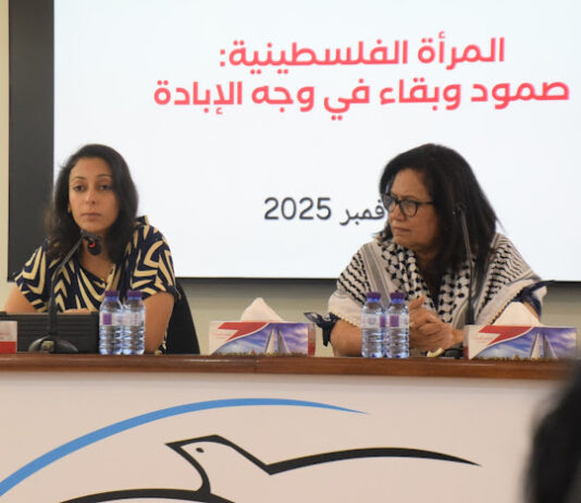 وقالت المحاضرة إنه رغم كل هذه الجرائم، مازالت المرأة الفلسطينية رمزاً للصمود والبقاء، فهي حاضرة في مختلف أصعدة المقاومة وأشكالها، في مجالات الإغاثة الصحية والتعليمية والاقتصادية والثقافية والقانونية والإعلامية والمقاومة المسلحة، حيث تنوعت أدوار النساء بين مقاومة مدنية ومنظمة ومهنية: شاركن في تنظيم الاعتصامات والمسيرات وحملات المقاطعة والمناصرة المحلية والدولية، وساهمن في بناء شبكات تواصل ومساندة لتنسيق الإغاثة وتبادل المعلومات، كما عملن على توثيق الانتهاكات ونشرها عبر منصات محلية ودولية، مما ساهم في كسر حجب المعلومات وزيادة الضغط الدولي.