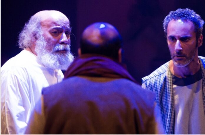 ينطلق نص حسين عبدعلي من مفارقة تأسيسية لافتة: حكواتي، مصدر الحكايات ومُنتِجها، يُحرم من القدرة على السرد. هذه المفارقة لا تُبنى بوصفها حدثاً غرائبياً فحسب، بل كتحوّل دلالي يعيد توزيع السلطة السردية. فبدل أن يكون الحكواتي هو مانح المعنى، يصبح متلقياً له، معتمداً على حكايات الآخرين بوصفها شرطاً لاستعادة صوته. هنا يستدعي النص الذي أعدَّ له عبدعلي، مأخوذاً من مصادر مختلفة أعلنها بوضوح: رواية (حكواتي الليل) لرفيق شامي/ ورواية (أهل البياض) لمبارك ربيع/ وقصة (غاسبار والمالك) لميليان ودولاور، وأخيراً قصة (الدرويش الثالث من ألف ليلة وليلة) التي استلَّ منها المعد أيضاً تقاليد الحكي، لكنه يقلب المعادلة؛ فبدل أن تنقذ الحكاية الراوي على الطريقة الشهرزادية، يصبح الراوي رهينة الحكايات.
